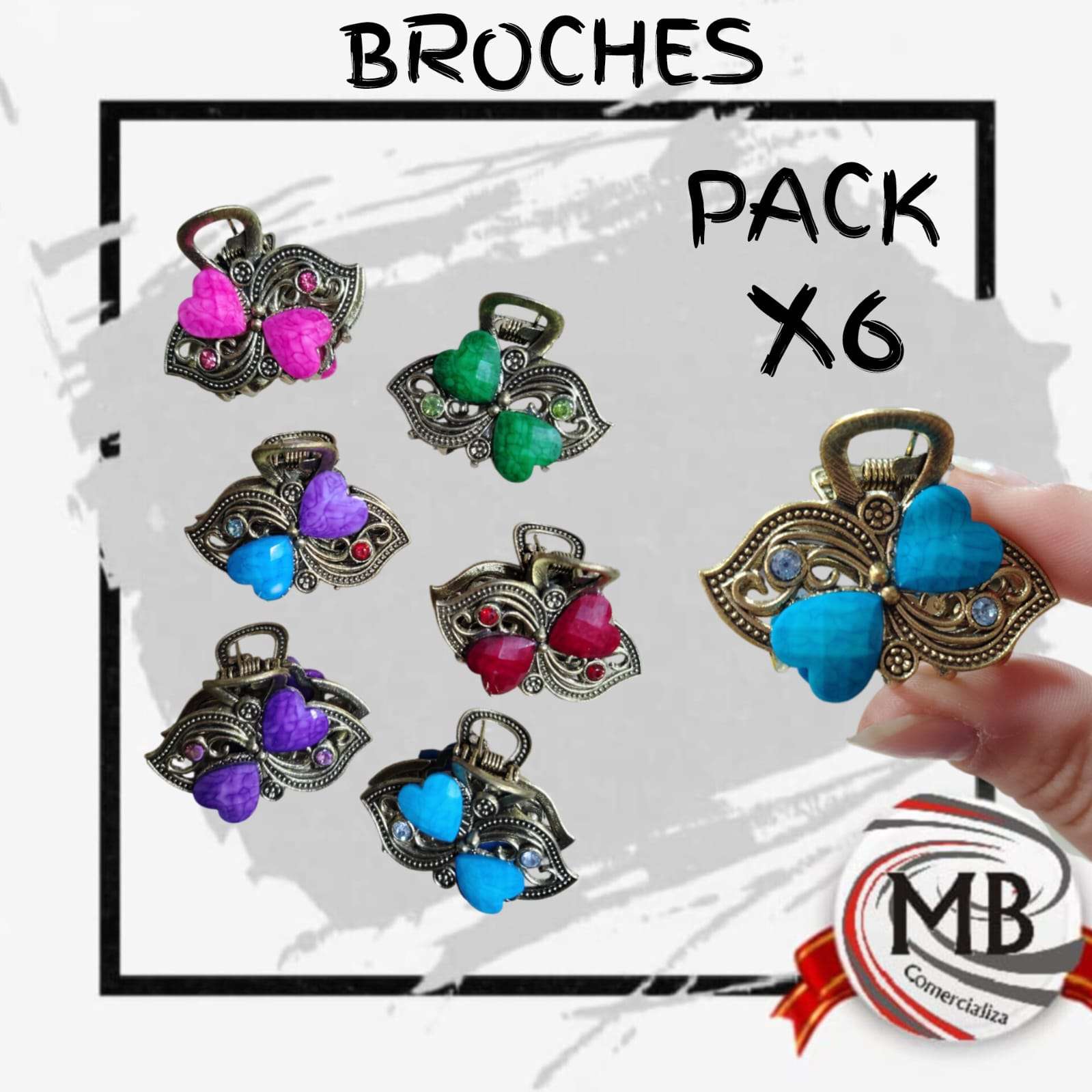 PACK X 6 BROCHES 3-4 CM VARIOS DISEÑOS MB13312 cantidad