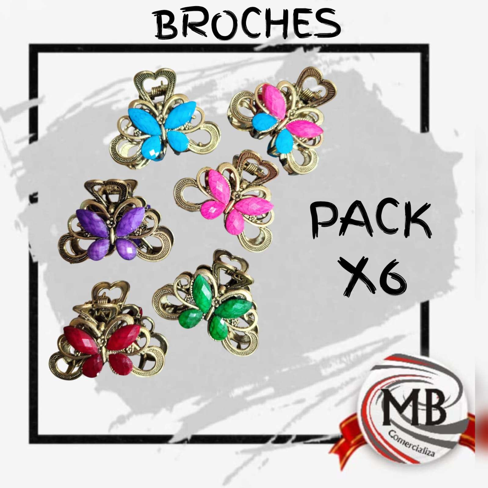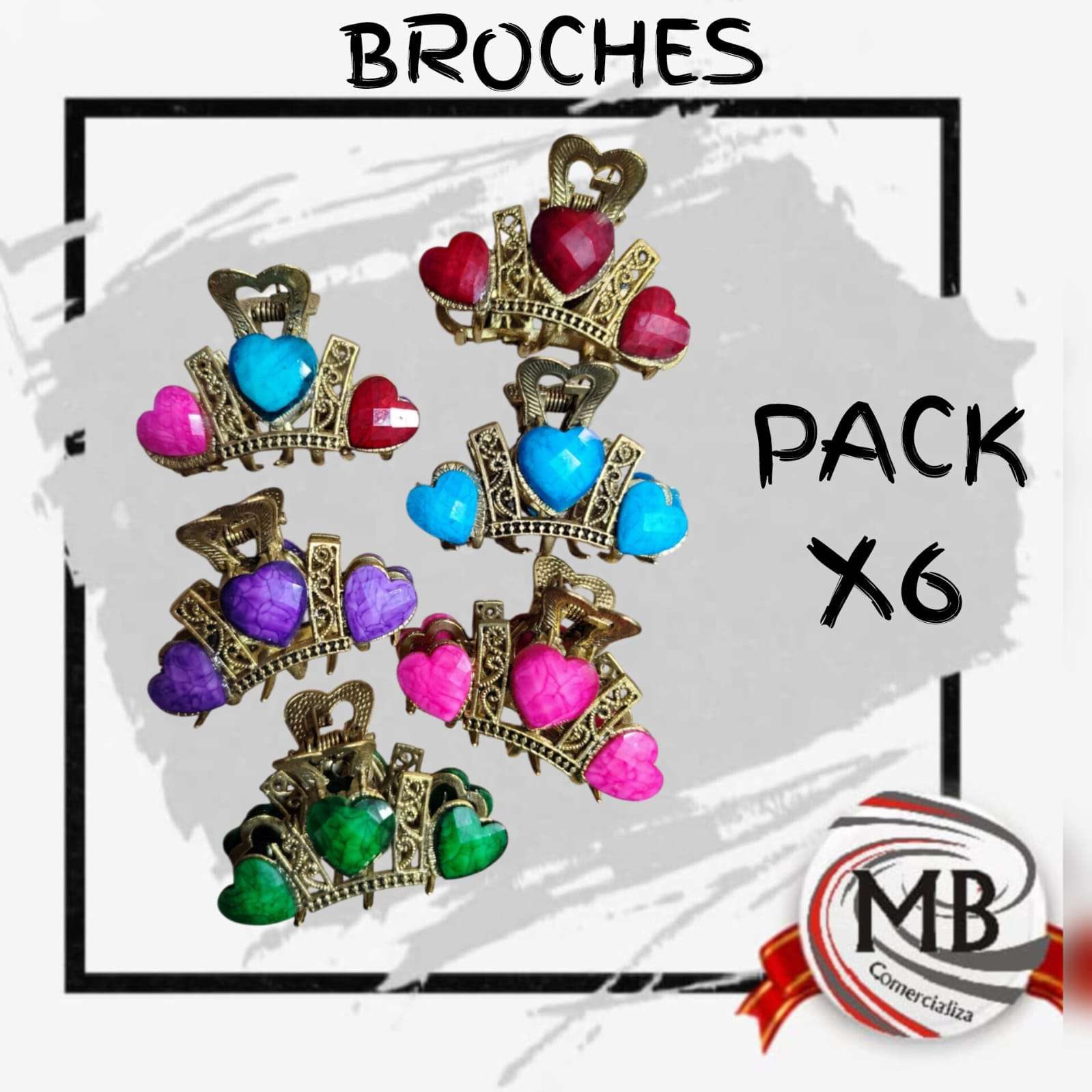 PACK X 6 BROCHES 4-5 CM VARIOS DISEÑOS MB13313 cantidad