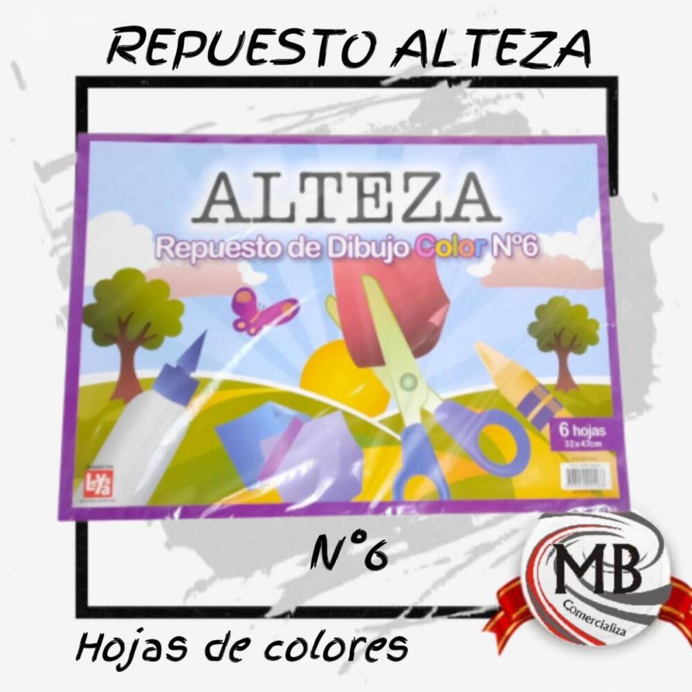 Repuesto de dibujo N6 hojas de colores Alteza pack x6 unidades venta por mayor Argentina.